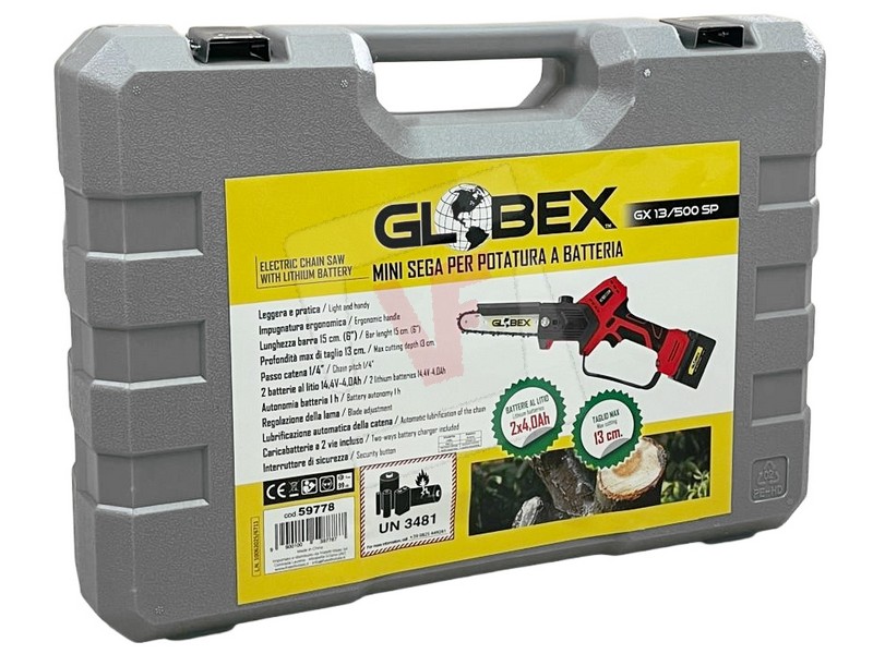 59778 | Globex MINI SEGA PER POTATURA GX 13/500 SP CON 2 BATTERIE A LITIO 16.8V-4,0AH Taglio max cm. 13 ||Globex |