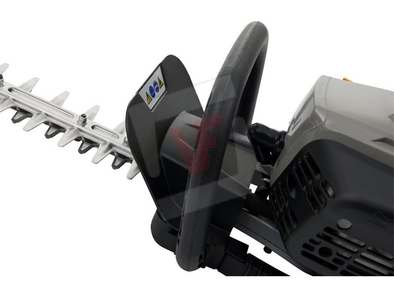 Motore a 2 tempi, sistema anti-vibrazione, lama di taglio cm. 70 a doppio movimento, protezione sulla punta della lama per tagliare vicino a
