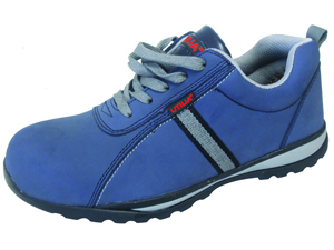 Tomaia liscia in Nubuck blu, fodera in tessuto, suola in materiale antistatico e assorbente, puntale in materiale composito a norma EN 12568, lamina in tessuto antiperforazione a norma EN ISO 20345:2011.