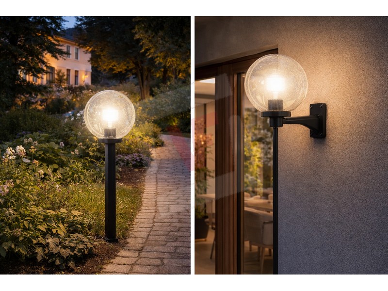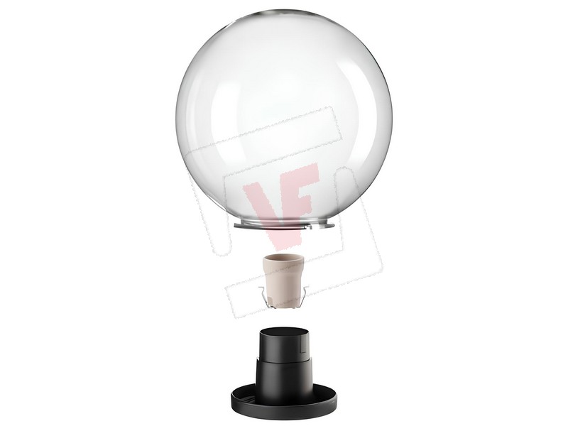 Struttura in metacrilato (PMMA), resistente agli agenti atmosferici e ai raggi UV, diffusione luce uniforme ed elegante, indicata per ambienti interni ed esterni, ideale per montaggio su palo o a parete tramite braccio, grado di protezione IP44, completa di base in policarbonato Ø cm. 6, portalampada E27 (portata max 20 W led), viti per il montaggio incluse, lampadina non inclusa.