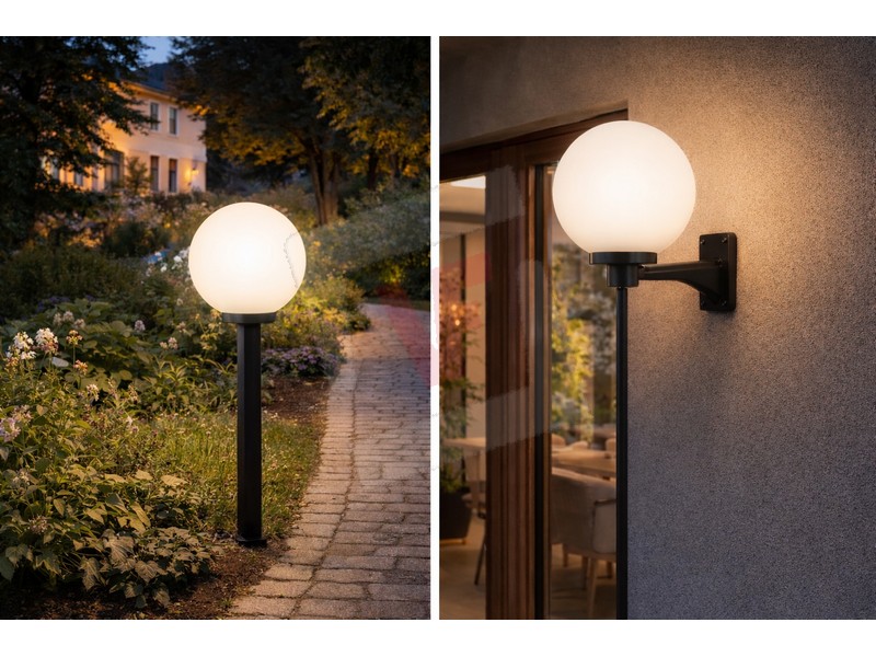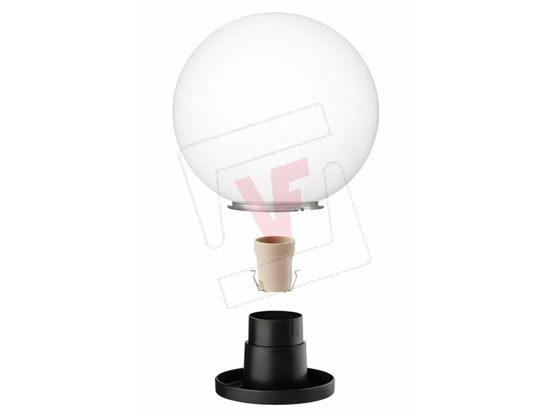 Struttura in metacrilato (PMMA), resistente agli agenti atmosferici e ai raggi UV, diffusione luce uniforme ed elegante, indicata per ambienti interni ed esterni, ideale per montaggio su palo o a parete tramite braccio, grado di protezione IP44, completa di base in policarbonato Ø cm. 6, portalampada E27 (portata max 20 W led), viti per il montaggio incluse, lampadina non inclusa.
