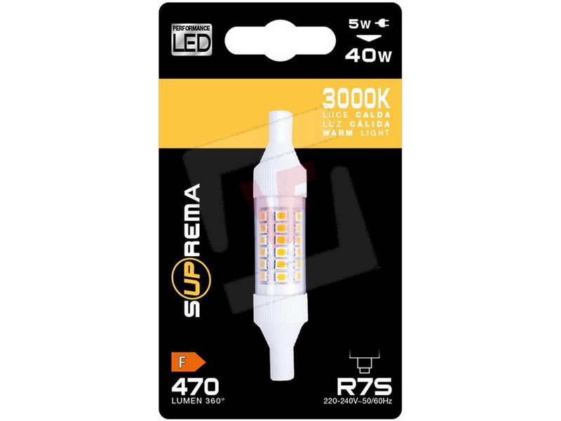 Suprema LAMPADA LED LINEARE R7S mm. 78, Luce calda 4,8 W - 470 lumen