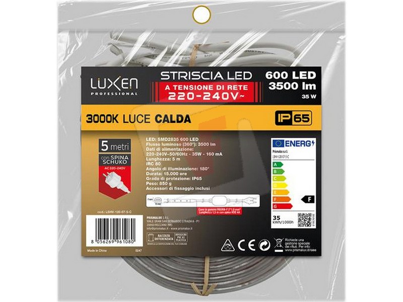 60473 | Suprema STRISCIA LED Luce Calda 7 W/m - 120 Led/m - 700 Lumen/mt , IP65, 5 mt. || |