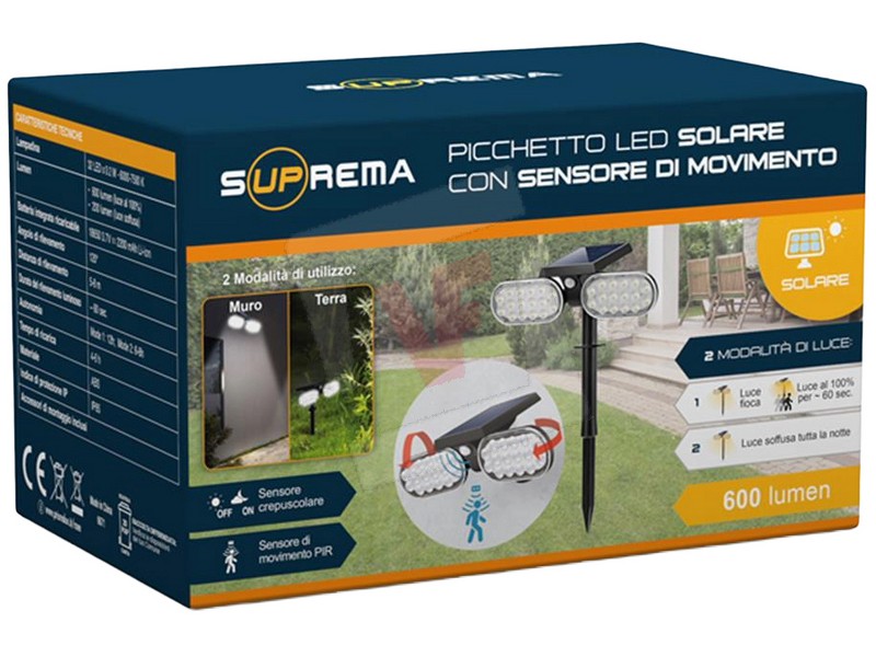 Suprema PICCHETTO SOLARE SNODABILE, 32 led x 0,2 watt, 200-600 lumen, luce fredda