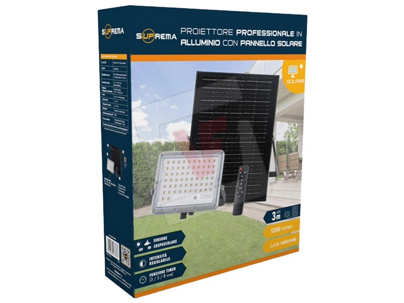 Suprema PROIETTORE SOLARE CON SENSORE CREPUSCOLARE 62 led, 8 W, 1200 lumen, luce naturale
