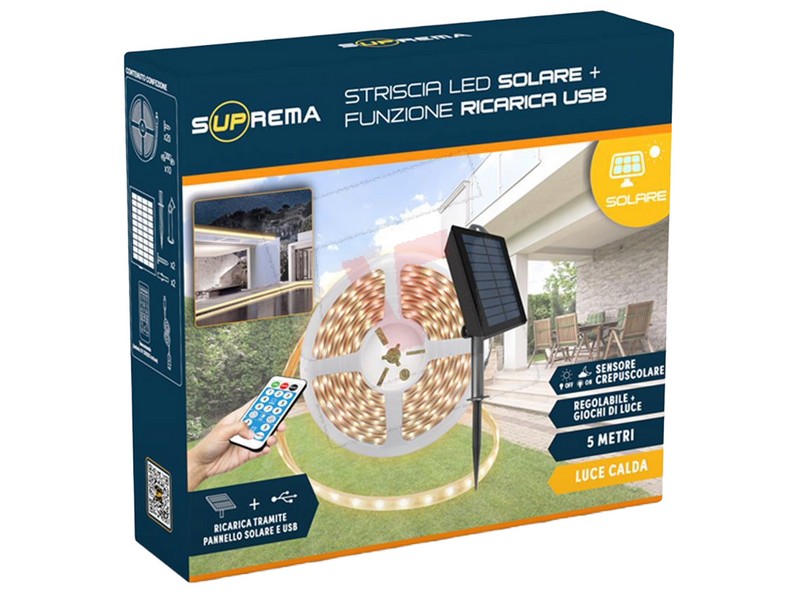 Suprema STRISCIA LED SOLARE, 2,5 watt, 60 led/mt, mt. 5 , luce calda