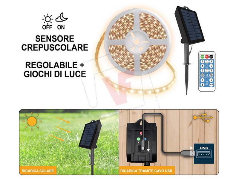 60552 | Suprema STRISCIA LED SOLARE, 2,5 watt, 60 led/mt, mt. 5 , luce calda || |