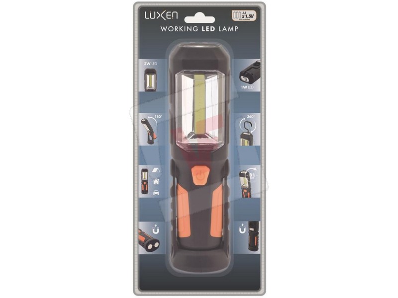 60558 | Luxen TORCIA DA LAVORO CON MAGNETE 3 W FRONTALE + 1 W TORCIA, 240 lumen, col. Arancione || |
