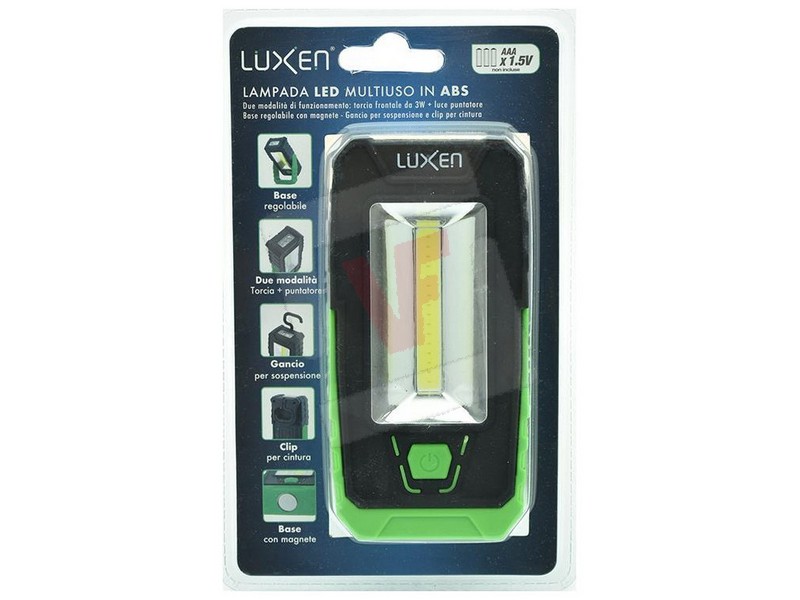 60559 | Luxen TORCIA TASCABILE CON MAGNETE 3 W FRONTALE + 1 W TORCIA, 240 lumen, col. Verde || |