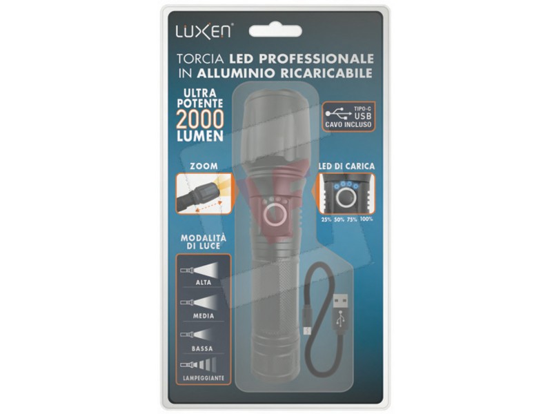 60560 | Luxen TORCIA PROFESSIONALE RICARICABILE IN ALLUMINIO 20 W, 2000 lumen, 4 modalità di luce + Zoom || |