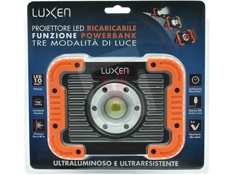 60569 | Luxen PROIETTORE PORTATILE RICARICABILE, POWERBANK, 10 W, 750 lumen, 3 modalità di luce || |