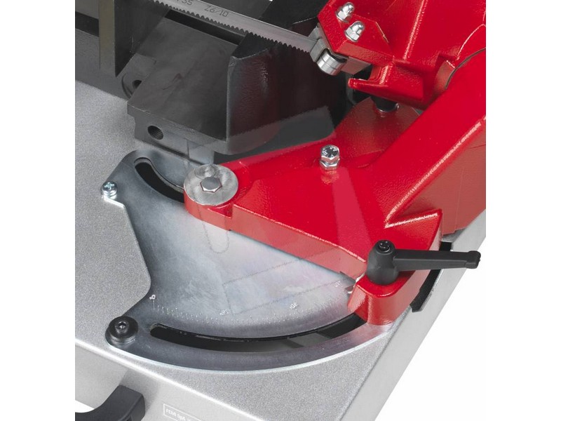 Ideale per il taglio di ampi profili come canaline e tubolari, elevata capacità di taglio maggiorata, sistema esclusivo del braccio roto traslante (brevettato), potente motore universale, 2 velocità, regolazione elettronica della velocità, protezione termica, maniglie per un facile trasporto, in dotazione: 1 lama bimetallica al cobalto, asta fermo barra, filtro abbattimento disturbi elettromagnetici.