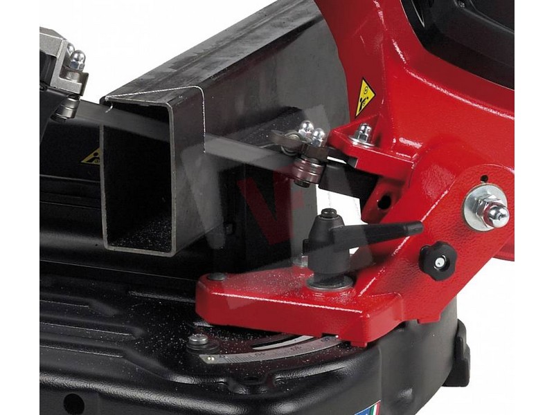Elevata capacità di taglio, innovativo tendi lama frizionato per il controllo e la regolazione della corretta tensione della lama (brevettato), potente motore universale, regolazione elettronica della velocità Constant Speed, limitatore amperometrico e protezione termica, morsa pressofusa con guide prismatiche, in dotazione: 1 lama bimetallica al cobalto, asta fermo barra, utensile per il cambio lama, filtro abbattimento disturbi elettromagnetici.