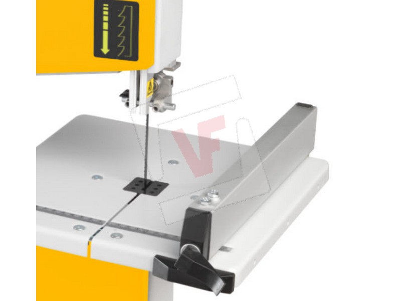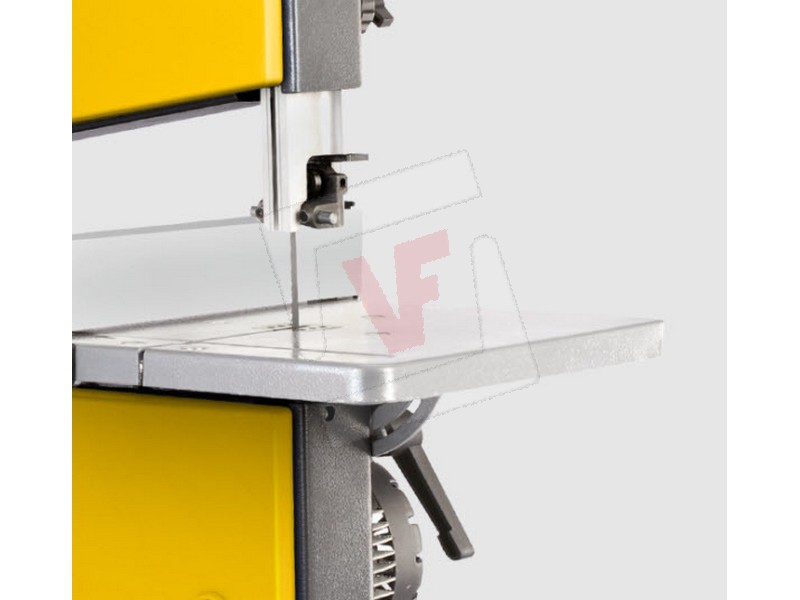 Estremamente compatta e silenziosa, telaio in tubolare saldato di grande resistenza, piano inclinabile fino a 45°, bocchetta di aspirazione Ø mm. 40, cambio lama in sicurezza senza attrezzi, guida parallela per eseguire tagli dritti, in dotazione: 1 lama a nastro dentatura Z6, spingi legno, chiavi di servizio.