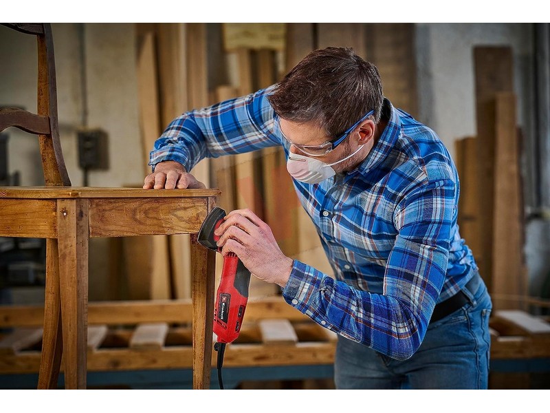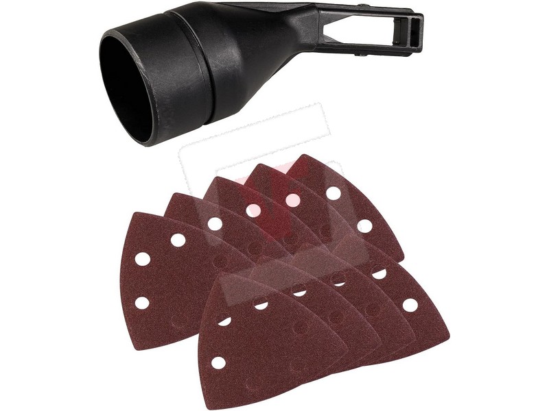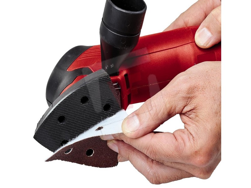 Design super compatto, platorello a delta ruotabile in 3 posizioni, velocità regolabile, cambio veloce della carta abrasiva con velcro, impugnatura ergonomica soft grip, cavo di alimentazione mt. 2, gancio per cavo alimentazione, in dotazione: 9 fogli abrasivi (2x P60, 2x P120, 2x P240, 3x P400), adattatore per aspirazione.